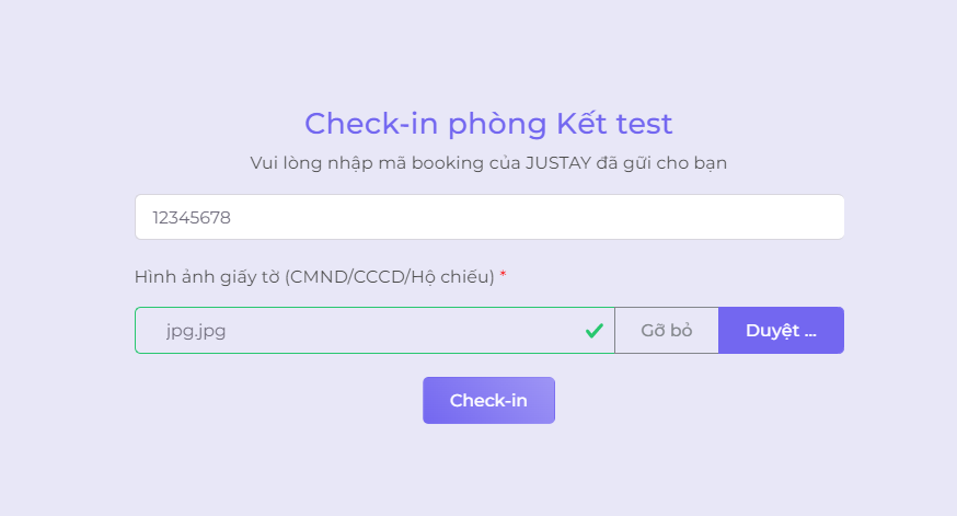 Sau khi khách hàng của bạn cập nhật đúng và đủ các thông tin mã booking và ảnh CMND/CCCD/Hộ chiếu và click "Check-in" hệ thống sẽ ghi nhận thông tin và thông báo đến khách hàng của bạn rằng họ đã check-in thành công kèm theo mã lock box (nếu có)