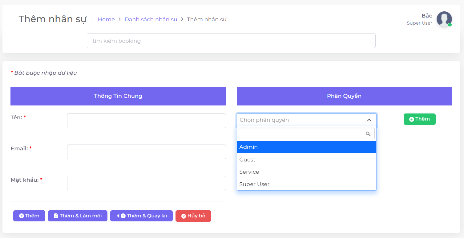 Chỉ cần có được tên email bạn đã có thể chủ động tạo tài khoản cho nhân viên để truy cập vào hệ thống. Hơn nữa hệ thống của Be Ready không chỉ cho phép bạn tạo tài khoản, mà còn cho phép bạn cấp quyền/vai trò ứng với mỗi vị trí/chức vụ khác nhau.